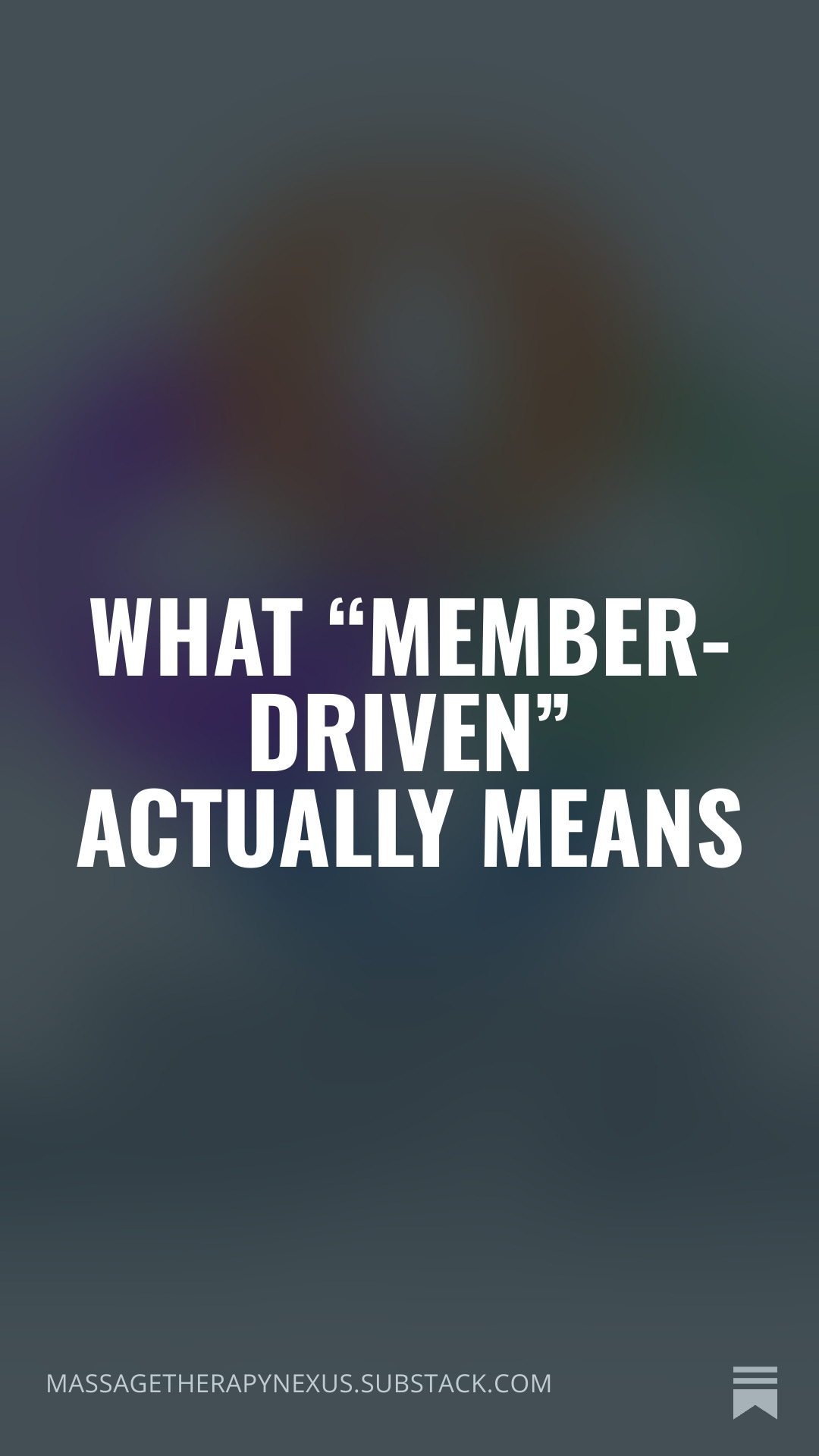 My opinion: massage therapy is a profession that desperately needs a member-driven organization because the problems we face are not minor inconveniences. They affect livelihood, safety, legitimacy, and the future of the field. A member-driven association would not magically fix everything, but it would change the direction of power. And that is where reform starts: not with better slogans, but with members having real authority over what their association does next.